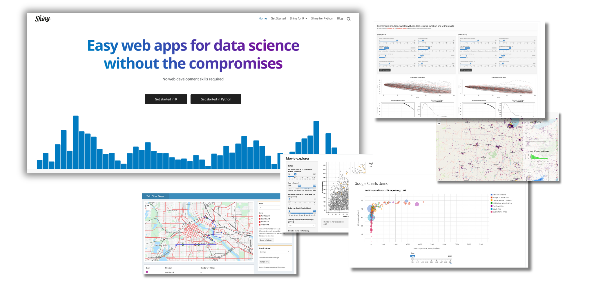 Shiny is an R package for building interactive web apps that respond to user inputs and data changes in real time. It lets you turn your analyses into interactive applications.